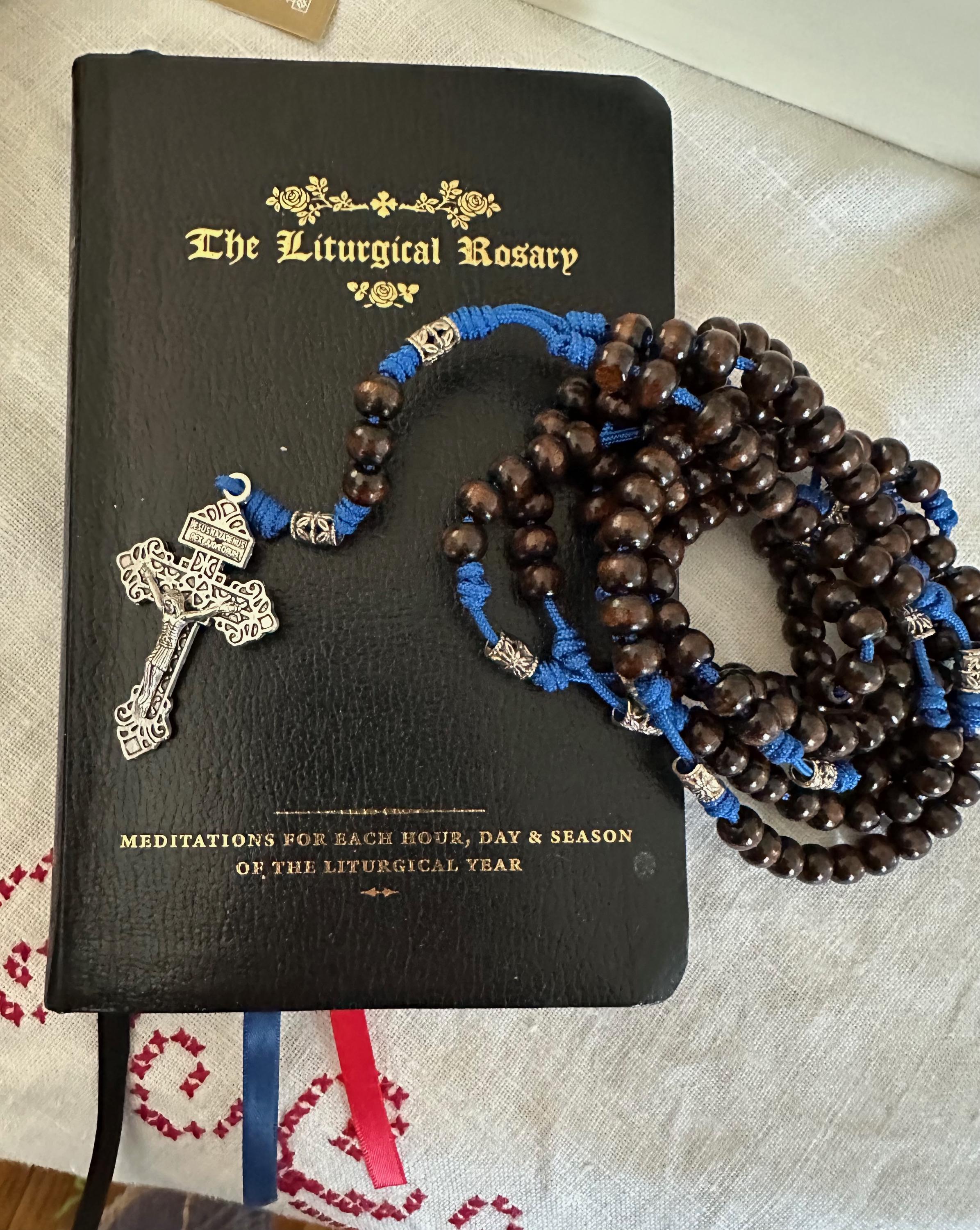 I often pray the Liturgical Rosary and love to pray the Joyful, Sorrowful, and Glorious Mysteries together. This 15-decade rosary is perfect for that. I love the burnished wood beads and cobalt blue beads. I'm very happy with my purchase. Thank you!